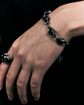 925 recycled sterling silver / Matte-black finish / Hand-set natural garnet