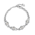 Clear quartz orbs revolve within sculptural links, tracing the rhythm of inner balance.